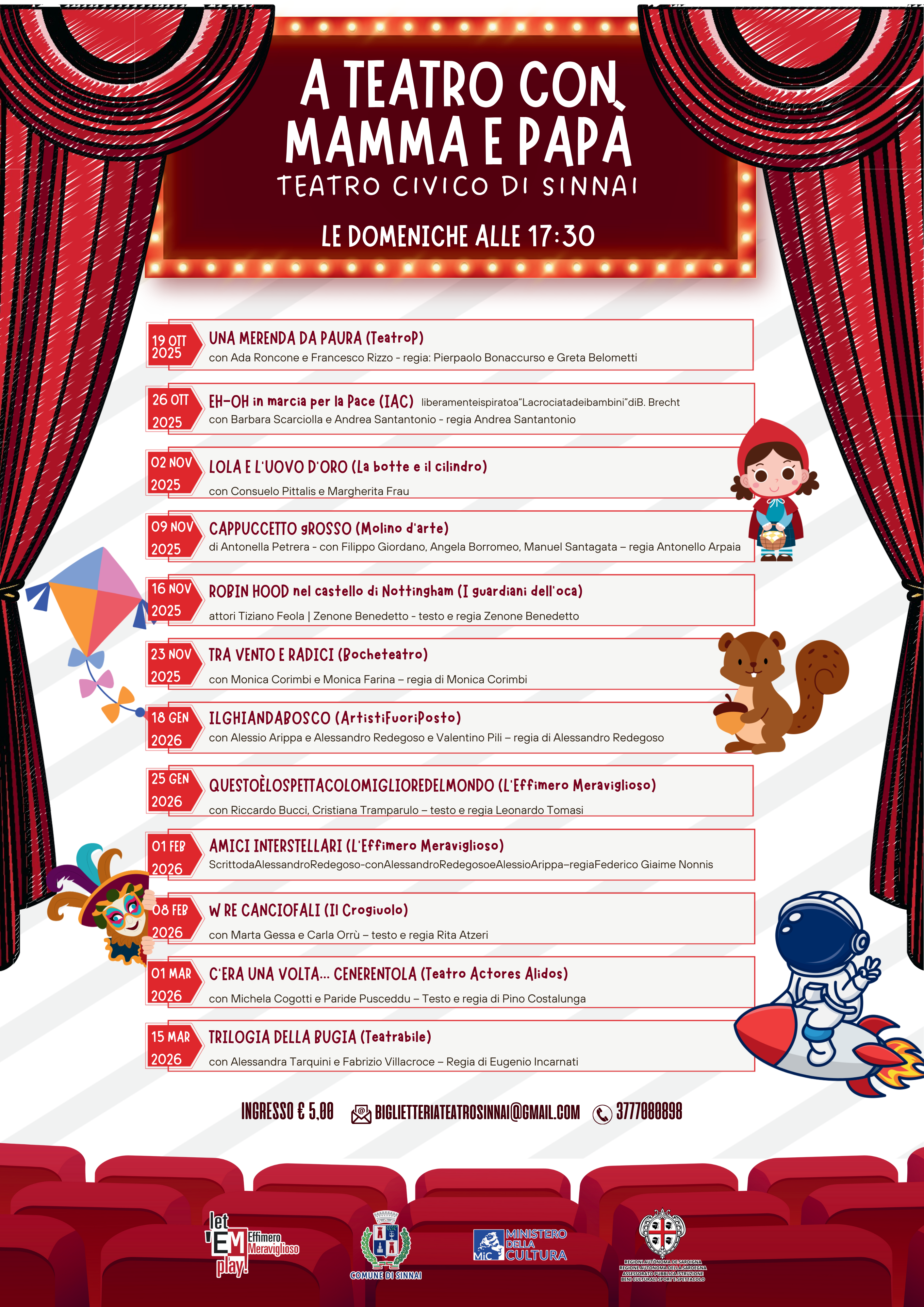 Da domenica 19 ottobre fino al 15 marzo, tutte le domeniche alle ore 17:30 al Teatro Civico di Sinnai
